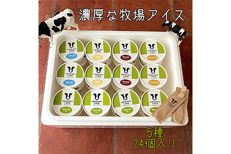 【北海道産搾りたて生乳使用】ひらかわ牧場のアイスクリーム 定番の5種24個セット フレッシュミルク バニラ チョコ キャラメルクランチ 抹茶 デザート スイーツ お取り寄せ ギフト せたな町 ふるさと納税