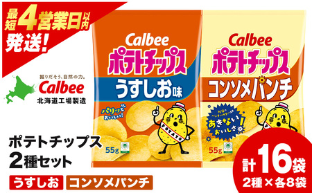 カルビーポテトチップス 2種セット うすしお・コンソメパンチ 各8袋 《北海道工場製造》