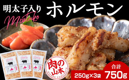明太子入り 味付けホルモン 250g×3パック 消費期限 製造より冷凍300日 アレルギー品目 小麦 さば 豚肉 ゼラチン 大豆 ごま 事業者 株式会社Souplesse(スプレス)(株式会社肉の山本)