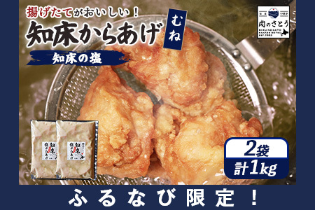 【ふるなび限定】【揚げるタイプ】知床からあげ【知床の塩】 むね1.0kg(500g×2パック)FN-Limited-PR【35183】
