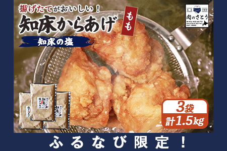 【ふるなび限定】【揚げるタイプ】知床からあげ【知床の塩】 もも1.5kg(500g×3パック)FN-Limited-PR【35185】