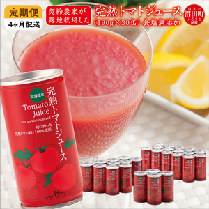 〔定期便〕完熟トマトジュース(無塩)190g×30缶×4ヶ月 保存料 無添加 国産 北海道産 ヘルシーDo認定 ESSEふるさとグランプリ銀賞 n-0019