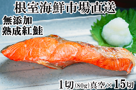 根室海鮮市場<直送>無添加天然熟成紅鮭1切(約80g)真空×15P A-28242