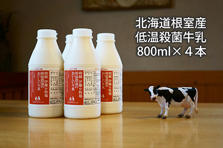 【北海道根室産】低温殺菌牛乳800ml×4本 A-13025