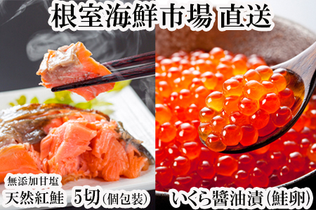 無添加天然紅鮭1切れ真空×5P、いくら醤油漬け(鮭卵)70g×1P G-11068