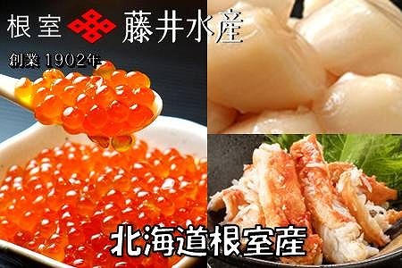 【北海道根室産】いくら醤油漬け50g×1P・ボイルたらばがに剥き身70g×1P・ほたて貝柱65g×1P G-42012