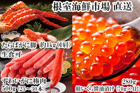 【北海道根室産】生冷凍たらばがに脚、醤油イクラセット C-59018