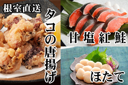 たこ唐揚げ250g×1P、ほたて貝柱200g×1P、甘塩紅鮭5切×1P A-30058