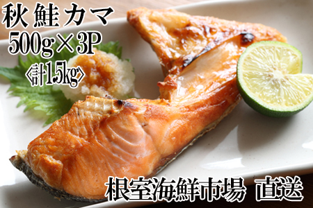 根室海鮮市場<直送>甘汐天然秋鮭カマ500g×3P(計1.5kg) G-28042