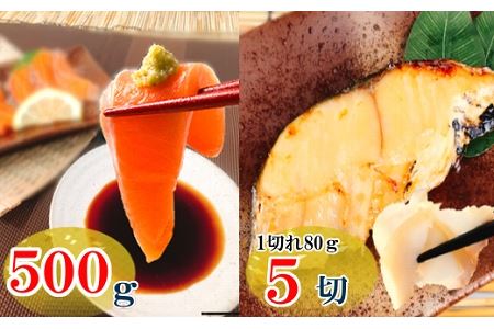 お刺身トラウトサーモン500g&銀だらみりん漬け1切×5P A-09037