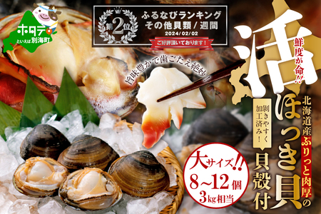 ランキング第2位獲得!鮮度抜群 貝殻付 活ホッキ 大サイズ 8~12個 3kg相当 北海道 野付 別海町
