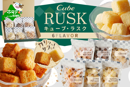 【内容量】 北海道産 小麦・バター 使用 別海 キューブ・ラスク 6種 詰め合わせ セット シュガーバター:30g×1個 チーズ:30g×1個 コーンポタージュ:30g×1個 メロン:30g×1個 小倉バター:30g×1個 チョコ:35g×1個 【賞味期限】 発送日より60日 【保存方法】 ・常温 直射日光、高温多湿を避け保存してください。 ※ご到着後は、期限に関わらずお早めにお召し上がりください。 【原材料・成分】 【シュガーバター】小麦粉(国内製造)、バター、マーガリン、砂糖、牛乳、加糖練乳、食塩、パン酵母、(一部に小麦・卵・乳成分を含む) 【チーズ】小麦粉(国内製造)、バター、プロセスチーズ、砂糖、乳加工品、食塩、パン酵母、ソテードオニオンの素、ブラックペッパー、酵母エキス/乳化剤、カラメル色素、(一部に小麦・乳成分・大豆を含む) 【コーンポタージュ】小麦粉(国内製造)、バター、マーガリン、砂糖、コーンポタージュシーズニング(スイートコーンパウダー、乳等を主要原料とする食品、食塩、砂糖、チーズ加工品、野菜パウダー、チキンエキスパウダー)、牛乳、加糖練乳、コーンパウダー、食塩、パン酵母/調味料(アミノ酸等)、微粒二酸化ケイ素、香料、(一部に小麦・卵・乳成分・大豆・鶏肉を含む) 【メロン】小麦粉(国内製造)、砂糖、バター、マーガリン、牛乳、メロンピューレ加工品、加糖練乳、食塩、パン酵母/着色料(紅麹、クチナシ)、酸味料、香料、(一部に小麦・卵・乳成分を含む)【小倉バター】小麦粉(国内製造)、砂糖、バター、マーガリン、牛乳、加糖練乳、食塩、パン酵母/香料、着色料(カラメル、クチナシ)、(一部に小麦・卵・乳成分を含む) 【チョコ】準チョコレート(国内製造)(植物油脂、砂糖、ココアパウダー、カカオマス、乳糖)、小麦粉、牛乳、加糖練乳、バター、マーガリン、砂糖、食塩、パン酵母/乳化剤、香料、(一部に小麦・卵・乳成分・大豆を含む) 【原産地】 ・北海道 【加工地】 ・北海道函館市 【注意事項】 ※画像はイメージです。