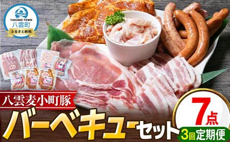 【3回定期便】八雲麦小町豚 バーベキューセット7点詰め合わせ(ロース・ソーセージ等)