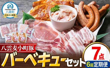 【6回定期便】八雲麦小町豚 バーベキューセット7点詰め合わせ(ロース・ソーセージ等)
