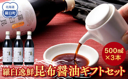 羅臼昆布しょうゆ 500mL × 3本 【アレルギー】 小麦、大豆 ※ 表示内容に関しては各事業者の指定に基づき掲載しており、一切の内容を保証するものではございません。 ※ご不明の点がございましたら事業者まで直接お問い合わせ下さい。