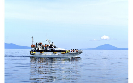 1名様分乗船料:羅臼沖ホエールウォッチングクルーズ:約2時間30分 製造地:北海道目梨郡羅臼町 観光船アルラン3世 【代替品について】 当日の天候不良によりホエールウォッチングクルーズが中止になった場合の代替品として、当社自家製の羅臼ほっけ一夜干しやいくら醤油漬けを詰め合わせた海産物セットを冷凍便にて発送いたします。 ※仕入れの事情等により品物の変更がある場合がございます。 <代替品内容(予定)> ・羅臼ほっけ一夜干し1枚350g~400g(2枚) ・羅臼産イクラ醤油漬け 200g ・羅臼昆布 100g ・スケトウダラのみりん干し 100g ・羅臼産細切りさしみ昆布450g <代替品賞味期限> ・ほっけ一夜干し/いくら醬油漬け/スケトウダラのみりん干し/羅臼産細切りさしみ昆布は届いてから1か月以内、生ものの解凍後は早めにお召し上がりください。 ・羅臼昆布は届いてから半年以内 <代替品保存方法> ・ほっけ一夜干し/いくらは-18度以下要冷凍 ・そのほかは高温多湿を避けて冷暗所に保存 産地:北海道目梨郡羅臼町 株式会社知床アルラン 【有効期限】 有効期限:こちらからお電話差し上げてから1年間