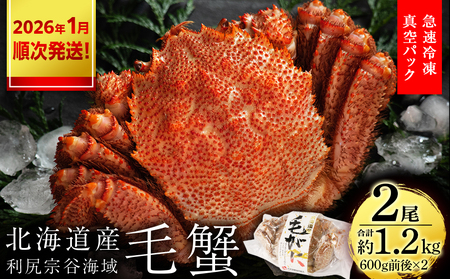 【2026年1月発送】 毛ガニ 中(600g前後)2尾<利尻漁業協同組合>