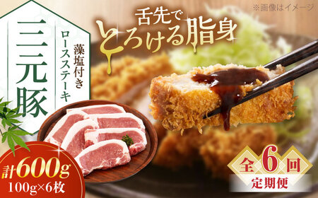 以下の内容を全6回(毎月1回)お届けします。 ・三元豚ロースステーキ100g×6枚 ・藻塩10g×2パック 【原材料名】 豚肉・海水・海藻