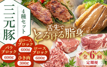以下の内容を全6回(毎月1回)お届けします。 ・三元豚ロースブロック600g ・三元豚バラブロック600g ・三元豚肩ロースブロック600g ・三元豚ひき肉300g×2パック 【原材料名】 豚肉