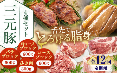以下の内容を全12回(毎月1回)お届けします。 ・三元豚ロースブロック600g ・三元豚バラブロック600g ・三元豚肩ロースブロック600g ・三元豚ひき肉300g×2パック 【原材料名】 豚肉