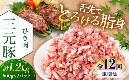 【全12回定期便】平田牧場 ひき肉 1.2kg (600g×2P) 豚肉 餃子 つくね [AJAP125]