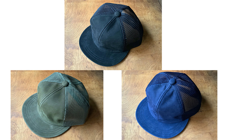 ヌバックを使ったメッシュキャップ 《素材》レザー部分:北米産ステア、メッシュ部分:ナイロン100 ※カラーを「ブラック」「カーキ」「ネイビー」よりお選びください。
