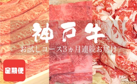 定期便 神戸牛 お試しコース 3ヵ月連続お届け[ 肉 食べ比べ すき焼き 焼肉 切落し ]