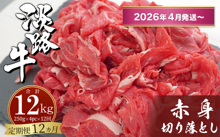 【定期便12ヶ月2026年4月発送~】淡路牛赤身切り落とし 1kg(250g×4PC)