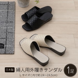 ■婦人用外履きサンダル 1足 カラー:「ベージュ」「ブラック」からお選びください。 サイズ:Lサイズ(約24~24.5cm) 素材:甲:ポリ塩化ビニル(Ag系抗菌)、中板:ポリ塩化ビニル、合成底(ウレタン) 製造地:日本