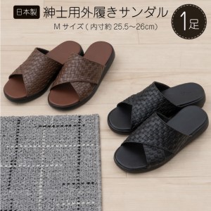■紳士用外履きサンダル 1足 カラー:「ブラック」「ブラウン」からお選びください。 サイズ:Mサイズ(約25.5~26cm) 素材:甲:ポリ塩化ビニル(Ag系抗菌)、中板:ポリ塩化ビニル、合成底(ウレタン) 製造地:日本