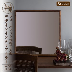 【SENNOKI】Stellaステラ ウォールナットW540×D35×H540mm(4kg)木枠正方形デザインインテリアミラー【2406M05027】