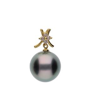 【久遠】ブラックパール ダイヤモンド イエローゴールド ペンダントトップ|無調色 黒蝶真珠 タヒチパール 10mm K18YG