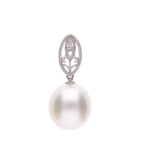 【澪標】シロチョウパール ダイヤモンド ホワイトゴールド ペンダントトップ|無調色 白蝶真珠 南洋真珠 10mm K18WG