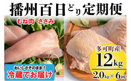 むね肉、ささみ〔各1kg(計2kg)/多可町産〕×6回 合計12kg