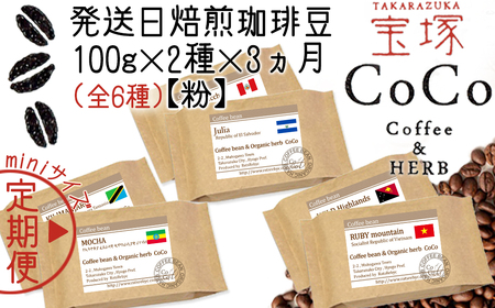 【宝塚】miniサイズ3ヶ月定期便C(当日自家焙煎珈琲6種 計600g)【粉】