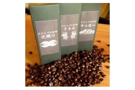 【宝塚】miniサイズ3ヶ月定期便A(当日自家焙煎珈琲3種 計600g)【豆】