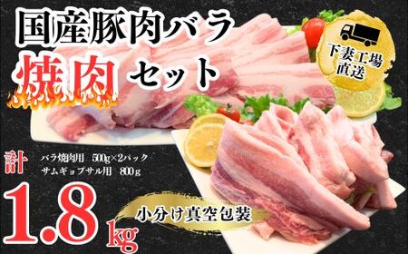 国産豚肉 ・サムギョプサル用:800g ・肩ロース焼肉用:500g ・豚トロ:500g ・1口スペアリブ:500g ※真空包装でお届け