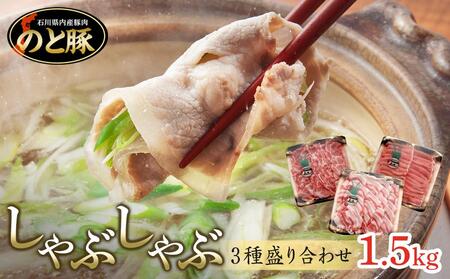 【復興支援】「のと豚」しゃぶしゃぶ3種盛り合わせ 1.5kg セット