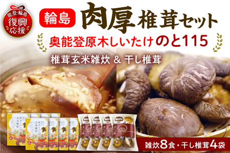 原木椎茸玄米雑炊8個、原木椎茸「のと115」干し椎茸40g4パック