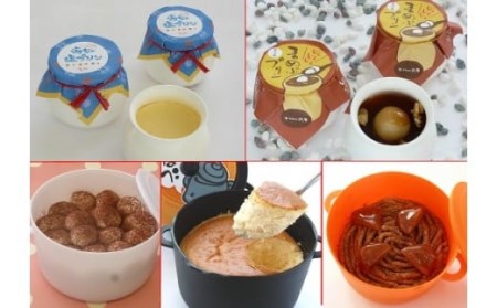 海女の塩プリン100g×3個 まめぶプリン100g×3個 おなべちゃん×3個(プレーン、ティラミス、栗各1個) ※おなべちゃん3個の中身は季節等により内容が変わります。 冷凍:90日 ※解凍後はお早めにお召し上がりください。