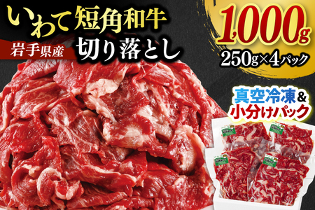 ・いわて短角和牛 切り落とし 1000g (250g×4パック)