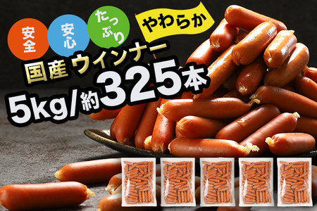 ・冷凍 ウインナー ソーセージ 5kg (1kg×5パック) ※1パック約65本入り