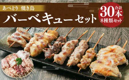 あべどり 焼き鳥 バーベキューセット 8種 30本入/ハラミ 皮 砂肝 テール串 ぼんじり 軟骨 もも セセリ 手羽中 やきとり 焼鳥 食べ比べ 串 BBQ 総菜 おかず おつまみ 冷凍
