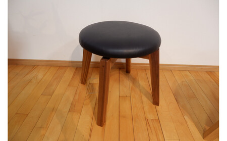 回転スツール(脚部材:ナチュラル/座面:本革ブラック)