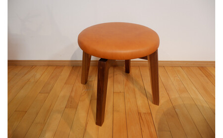 回転スツール(脚部材:ウォールナット/座面:本革キャメル)