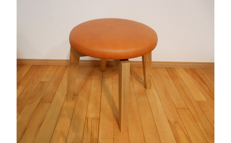 回転スツール(脚部材:ナチュラル/座面:本革キャメル)