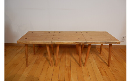 3連スツール(胡桃) (3連の状態)w1200×D370前後×H410(ミリ) ※単体サイズw400×D370前後×H410(ミリ) ※手作りの為多少の誤差はあります ※自然木の為、写真のものと多少違いはあります