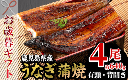 【令和7年お歳暮対応】厳選! 国産 鹿児島県産 うなぎ 蒲焼 4尾 大 合計約640g 贈答 ギフト にも!【南竹鰻加工】【SC-022H】