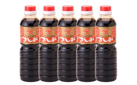 さしみ醤油5L[1L×5本] 原材料:アミノ酸液、小麦、大豆、食塩 原産地:国内、アメリカ、ブラジル、インド、カナダ等 製造地(加工地):鹿屋市 賞味期限:2年 アレルギー:小麦、大豆