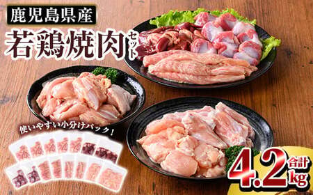 K-221 鹿児島県産 若鶏焼肉セット (合計4.2kg)【TRINITY】 霧島市 国産 冷凍 真空パック 小分け 鶏肉 鳥肉 詰め合わせ